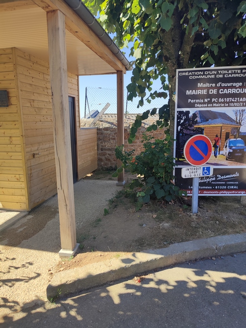 Bâtiment en bois sur le parking de l'église , le long de la rue du chapitre. un robinet est accessible à l'extérieur
