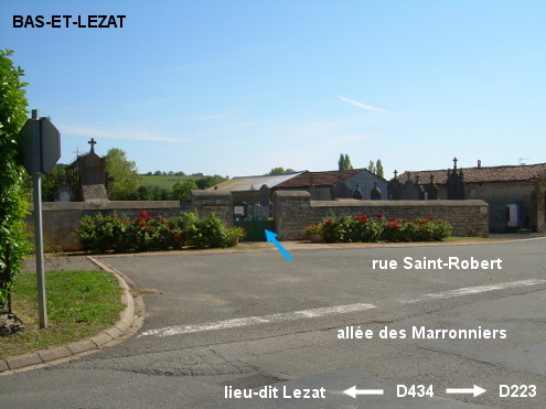 Le cimetière est situé côté droit très en retrait par rapport à la D434 quand on vient du centre du village. Le robinet est à l'intérieur du cimetière à gauche du portail (N.B. : L'ouverture du portail est gênée par des frottements). 1) Sur la D223 qui traverse le village, lorsque l'on roule en direction d'Aigueperse, tourner à droite juste après l'église dans la D434 en direction du lieu-dit Lezat (très peu avant le carrefour à gauche avec la D91direction Saint-Clément-de-Régnat). Plus loin, on verra côté droit derrière un grand îlot arboré la rue parallèle qui passe devant le cimetière et se termine juste devant, avant de déboucher sur la D434. Tourner à droite et faire quelques mètres jusqu'au portail du cimetière (à 240 mètres du carrefour D434 / D223). 2) Dans l'autre sens de circulation, compte tenu de la configuration des lieux, on ne découvrira le cimetière côté gauche qu'au tout dernier moment quand on sera à sa hauteur.