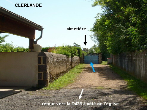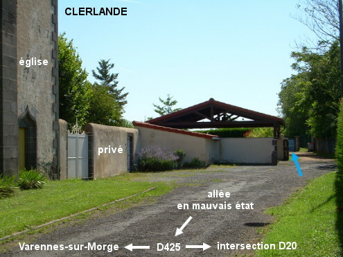 Le cimetière se trouve au bout de l'allée située à droite de l'église érigée au bord de la D425 en direction de Varennes-sur-Morge. Le robinet est à l'intérieur du cimetière, à gauche du portail. 1) En provenance de Varennes-sur-Morge sur la D425, entrer à gauche sur l'allée après l'église et rouler jusqu'au fond (70 mètres de macadam en très mauvais état puis 40 mètres en terre battue) pour arriver face au portail du cimetière que l'on ne voyait pas depuis la route (masqué). 2) En provenance d'Ennezat sur la D51 puis la D20, à l'intersection avec la D425 tourner à droite dans la D425 en direction de Varennes-sur-Morge. Ensuite, entrer à droite sur l'allée juste avant l'église pour trouver le cimetière tout au fond.