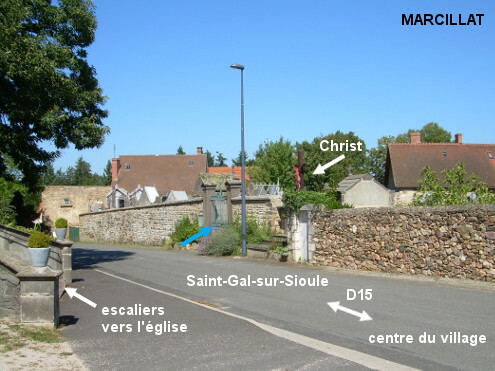 Le cimetière est implanté côté droit quasiment en face de l'église érigée côté gauche, lorsque l'on traverse le village sur la D15 en direction de Saint-Gal-sur-Sioule (N.B. : Dans l'autre sens, on ne voit pas l'église de loin car elle est située en retrait et après plusieurs arbres). Le robinet est à l'intérieur du cimetière à gauche du portail (N.B. : Tourner la poignée en sens inverse du sens habituel pour ouvrir le portail).
