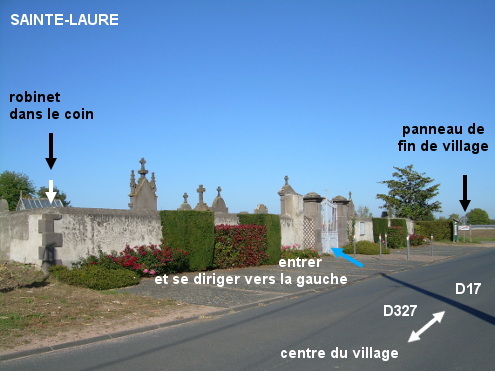 1) Le cimetière est implanté côté droit à l'entrée du village sur la D327 en provenance du lieu-dit Buxerolles (et de la D17) au niveau du panneau de début de village. Le robinet est à l'intérieur du cimetière dans le coin avant gauche (il faut faire une quinzaine de mètres sur une allée sablonneuse). 2) En provenance d'Ennezat ou inversement de Maringues sur la D224, ou de Joze sur la D327, au carrefour de ces deux routes dans le centre du village prendre la direction du lieu-dit Buxerolles sur la D327 pour arriver plus loin à hauteur du cimetière implanté côté gauche dans ce cas.