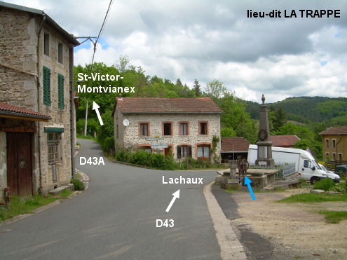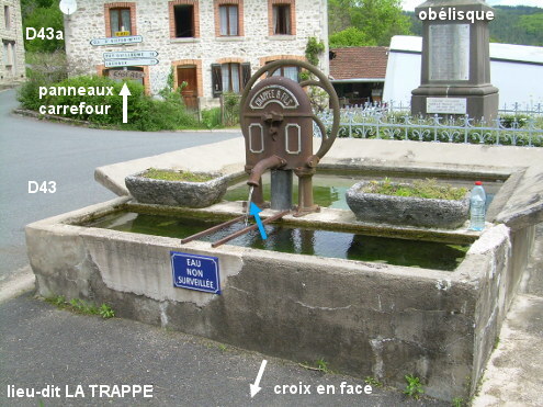 La fontaine se trouve au centre du lieu-dit La Trappe, au bord de la D43 face au carrefour avec la D43A qui monte au village de Saint-Victor-Montvianex (commune à laquelle est rattaché le lieu-dit). Sur la D43 en direction de Lachaux, le carrefour avec la D43A sera côté gauche et la fontaine à droite, entre une croix sur un socle et l'obélisque du Monument aux Morts. La fontaine s'écoule dans un grand bassin carré en pierre composé de deux parties. AVERTISSEMENT : Elle est accompagnée d'un écriteau ''eau non surveillée''.