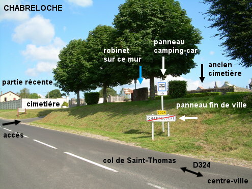 L'aire pour camping-car est implantée à la sortie de la ville sur la D324 en direction du col de Saint-Thomas, et à côté du cimetière. 1) En provenance de Palladuc sur la D64 puis la D86, au stop avec la D324, tourner à gauche en direction du col de Saint-Thomas. Juste après le panneau marquant la fin de la ville, en suivant la flèche de l'aire pour camping-car entrer à droite sur la voie desservant le cimetière et cette aire située en surplomb de la route. Se diriger vers la droite pour trouver le mur support des deux robinets côté droit. Le robinet d'eau potable est celui de droite, dont la buse est filetée. N.B. : L'autre robinet est destiné au rinçage des cassettes wc comme cela est écrit au feutre au-dessus de celui-ci. 2) En provenance de Viscomtat sur la D322 puis la D86 (en passant par le col des Sagnes), au carrefour en T avec la D2089 tourner à gauche en direction de la ville dans cette route à très grande circulation dont on n'aura que 360 mètres hors zone urbaine. Environ 520 mètres après le panneau de début de ville, en suivant les flèches de l'aire pour camping-car tourner à droite (rue du Champ de Foire) puis à gauche (suite de la même rue). Ensuite au T devant le cour de tennis, tourner à droite puis (face au cimetière) suivre la courbe à gauche pour trouver peu après et côté gauche le mur avec les robinets. P.S. : Juste après on peut rejoindre la D324 en direction du col de Saint-Thomas.