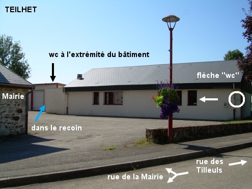 Les toilettes se trouvent dans un bâtiment situé au fond de la cour derrière la Mairie, à 150 mètres du rond-point D987 / D122. En provenance de Neuf-Église sur la D509 puis la D122, au rond-point avec la D987, continuer tout droit dans la rue en face (deuxième sortie) en suivant la flèche ''Mairie'' (D110A). Une fois à hauteur de la Mairie sise côté gauche, tourner dans la rue adjacente à gauche puis entrer aussitôt dans la grande cour à gauche. Une petite flèche apposée à l'extrémité du bâtiment près de la rue, indique la direction du ''WC''. Se diriger en diagonale vers le fond de la cour pour trouver en retrait après le premier bâtiment, un deuxième bâtiment, avec deux portes de garages et à son extrémité droite la porte identifiée comme celle des toilettes (à 30 mètres de la rue) que l'on ne voyait pas depuis la rue.