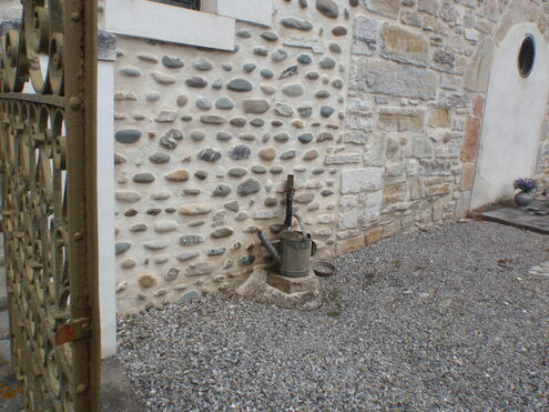 Robinet au cimetière d’Abitain, contre l’église, près du fronton (banc à l’ombre), en face de la Mairie. Situé à 300m de la Véloroute La Scandibérique (EV3), sortir à l’ancienne gare.