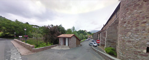 Les toilettes se trouvent le long d'une rivière, à côté de l'église, à proximité du fronton de pelote basque.