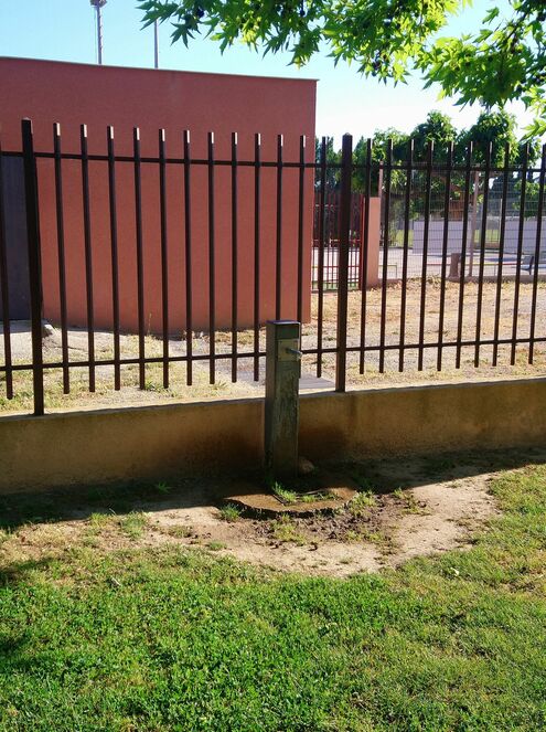 Robinet d'eau potable dans le parc quasiment face à l'entrée, en plus il y a un rack à vélo