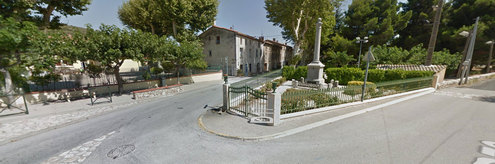 Le robinet se situe sur le pilier gauche de l'entrée du Monument au Morts, au carrefour du CD79 venant de Montner, et du CD17 venant d'Estagel.