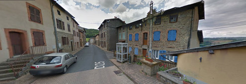 Une borne verte se trouve dans la rue principale, au pied d'une cabine téléphonique, à deux pas de l'église.