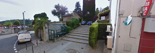 Rue du Lieutenant Audras, une borne se trouve à proximité du bureau de tabac et juste avant la montée des Roches.