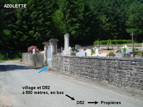 Le cimetière est situé en dehors du village au sommet d'une côte, à 550 mètres de la D52. Sur la D52 en provenance de Propières, à l'entrée du village prendre à droite la direction de l'église et du cimetière (fléchage et présence d'une croix). La Montée du Pavé est un raidard jusqu'à l'église puis continue à monter de manière plus douce jusqu'au carrefour en T avec le chemin des Murards et le chemin du Cros. Le cimetière est à l'angle sur le côté droit de la route. le robinet est à l'intérieur du cimetière, à gauche du portail.
