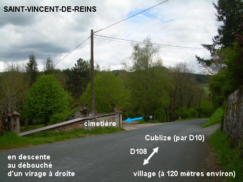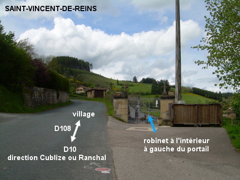 Le cimetière est situé en dehors du village au bord de la D108 quand on prend la direction de Cublize. Le robinet est à l'intérieur du cimetière à gauche du portail.1) En provenance de Cours-la-Ville sur la D64 puis la D108, au carrefour en T juste avant le village tourner à gauche dans la D9 pour entrer dans le village. Dans celui-ci, tourner à droite en direction de Cublize dans la suite de la D108. Environ 120 mètres après le panneau de fin de village, en descente et au sortir d'une courbe à droite on arrivera vers le cimetière implanté côté gauche dont le portail est orienté face au sens opposé de circulation. 2) En provenance du lieu-dit Magny sur la D10 puis la D108, on montera jusqu'au cimetière implanté côté droit, son portail nous faisant face juste après un parking en terre battue.