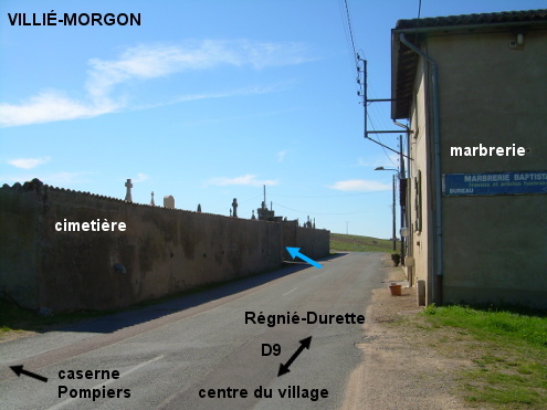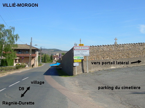 Le cimetière est implanté côté droit à l'entrée du village (au niveau du panneau de début) sur la D9 en provenance de Régnié-Durette, juste avant la caserne des Sapeurs-Pompiers. Le robinet est fixé sur un support à l'intérieur, à droite du portail qui donne directement sur la route (quatre marches d'escaliers, franchir le portail, puis faire sept pas sur la droite).