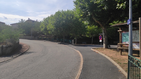 Les travaux sur la place des Platanes semblent terminés, la construction de la halle avec mezzanine est achevée, mais les toilettes publiques au rez-de-chaussée mentionnées sur le permis de construire (vu le 19 septembre 2024) ne sont pas encore disponibles. Les trois portes sans signe distinctif sont toutes verrouillées (constaté le 12 juillet 2025). Quant à l'ancien robinet qui était au bord de la rue et du parking, il n'a pas été réinstallé, il a été définitivement supprimé.