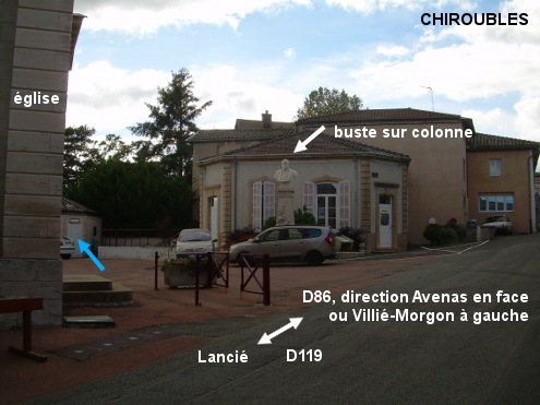 Ces toilettes se trouvent au fond du petit parking situé devant l'église érigée au bord de la D119 (rue des écoles). 1) En provenance de Lancié sur la D119, juste après l'église (sa porte est orientée face au sens opposé de circulation), entrer sur la place à gauche et se diriger vers le coin au fond à droite pour trouver le bâtiment des toilettes. 2) En provenance du col de Durbize sur la D86, à l'endroit où la D86 oblique à droite en direction de Villié-Morgon (à ce carrefour, il y a d'autres toilettes), continuer tout droit dans la D119 en direction de Lancié, on aperçoit déjà le clocher de l'église. Quelques mètres après, entrer à droite sur la place située devant l'église pour trouver les toilettes dans le coin à droite.