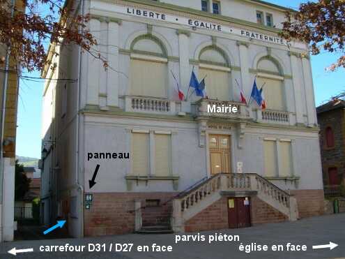 Ces toilettes se trouvent sur le côté gauche du bâtiment de l'Hôtel de Ville situé sur un grand parvis piéton près de l'église et qui est à l'angle de la D31 et d'une rue adjacente, près du carrefour D31 / D27. 1) En provenance de Saint-Forgeux sur la D27, juste après le carrefour à droite avec la D33 venant de Saint-Romain-de-Popey et le pont sur la Turdine, on arrive à un carrefour en T avec la D31. Traverser et entrer sur le parvis piétonnier qui est en face (on voit l'église au fond dudit parvis) puis longer les bâtiments qui sont sur la gauche pour prendre l'allée juste avant l'imposant bâtiment de l'Hôtel de Ville (au coin gauche de sa façade avant, un écriteau signale la présence d'un WC public). L'entrée des toilettes est tout de suite sur la droite (à 40 mètres de la D31). N.B. : Il y a deux marches d'escaliers à descendre, ensuite de chaque côté il y a un lavabo relativement petit (dans la partie avec les urinoirs à droite, comme dans celle de gauche avec les cabines WC). 2) En provenance de Saint-Loup sur la D31 puis la D31E1 (raccourci via le hameau de Vindry) et de nouveau sur la D31 (au carrefour en T tourner à gauche), au niveau du carrefour à droite avec la D27 venant de Saint-Forgeux, entrer à gauche sur le parvis piéton derrière lequel il y a l'église et sur la gauche duquel il y a l'Hôtel de Ville à quelques mètres de la D31. L'entrée des toilettes se trouve au début de son pignon gauche.