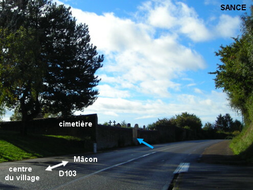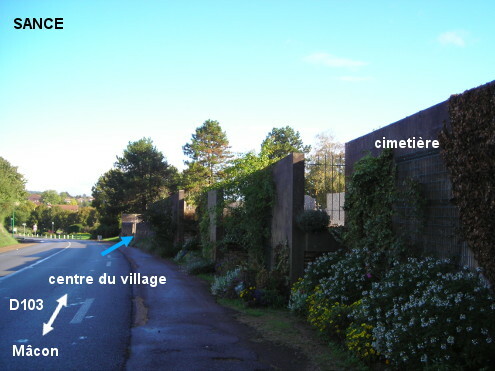 Le cimetière est implanté côté droit sur la D103 en provenance de Mâcon, avant le centre du village. Il est situé dans une portion légèrement descendante, juste après un passage piéton face à un abribus côté gauche et juste avant un autre passage piéton à côté d'une rue adjacente à gauche, un moment avant une place avec quelques commerces. Le portail est beaucoup plus proche du mur côté centre du village. Le robinet est à l'intérieur du cimetière, à droite du portail.