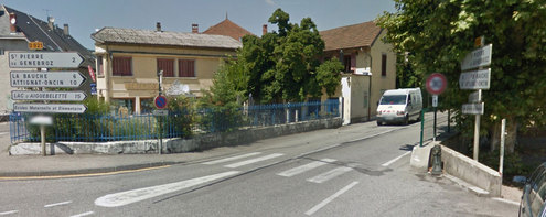 Une borne est située à l'angle de la RD1006 et de la RD921 qui grimpe vers la Bauche, le long d'un grand parking.