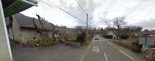 Située à droite dans le sens de la descente, à l'entrée du village environ 300m avant l'épingle à gauche.