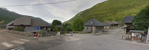 Une fontaine se trouve sur une placette à gauche de la route quand on monte vers le col du Frêne.