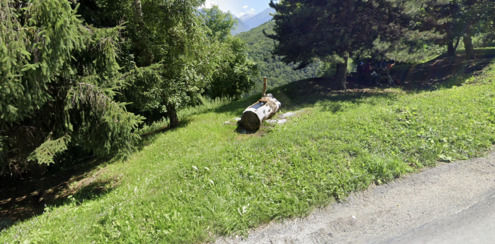 La fontaine se trouve au bord de la route, sur la gauche dans le sens de la montée
