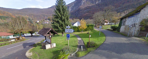 Le robinet se trouve sur une sorte de petite aire de pique-nique sur le côté gauche de la route, au sommet de la petite bosse quand on arrive depuis le péage d'autoroute.