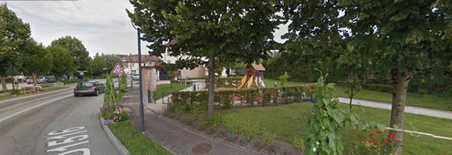 Une borne est présente dans le petit parc pour jeux d'enfants devant le Repaire Louis Mandrin.