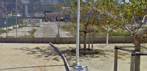 Au fond du parc, près du jardin d'enfant, au bord du rivage, le long des grilles blanches de l'arsenal.