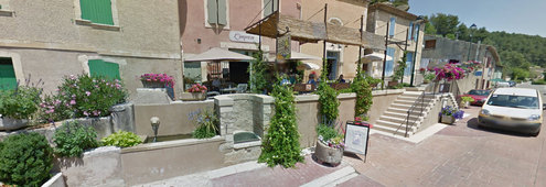 Une fontaine se trouve le long de la route passant au centre du village, au niveau d'une petite place, devant un restaurant.
