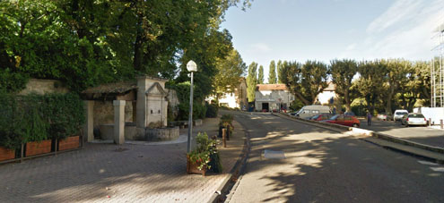 La fontaine est située face à l'église, elle se remarque assez facilement.