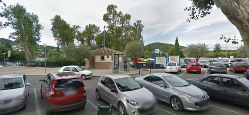 Les toilettes se trouvent le long du parking. Il s'agit d'un gros batiment carré, visible au centre de la photo ci-dessous.