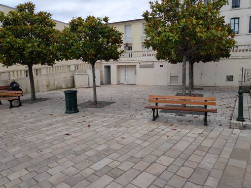 Les toilettes sont au coin Sud-Ouest, peu visibles sur cette petite place