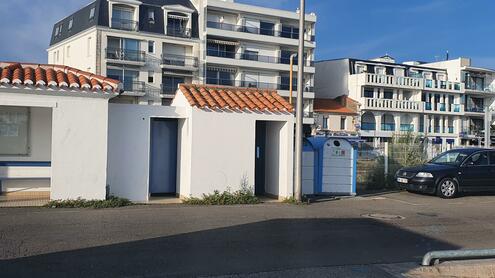 Les sanitaires se trouvent sur les quais du port, derriere la voie ferrée.