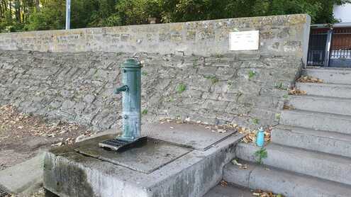 Au début de la Promenade Fr.Mitterrand, à côté de la péniche-chapelle 'Je Sers'. Fontaine sur les quais, en contrebas de la route